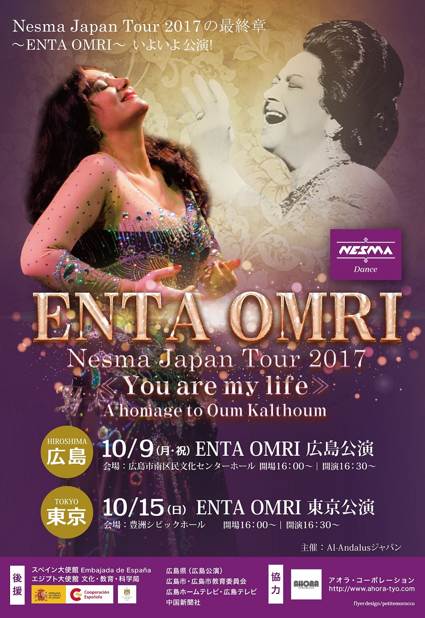 世界的に活躍する舞踊家、振付師であるNesma(ネスマ)と、彼女のオーケストラで活躍するアラブの笛「ネイ」奏者のFernando Depiaggi(フェルナンド・ディピアジ)をスペインより招き、日本のアラブ音楽家、そしてダンサーたちとともに、全編アコースティックの生演奏、そして映像も融合させた、新しい形のオリエンタルダンスのショーをお届けします。